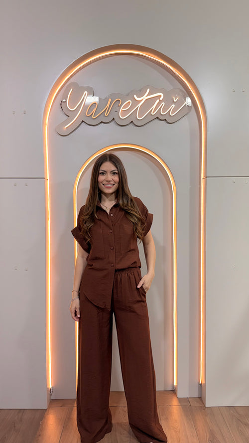 Conjunto Para Dama Pantalon Elastico Y Blusa Con Boton 2pz