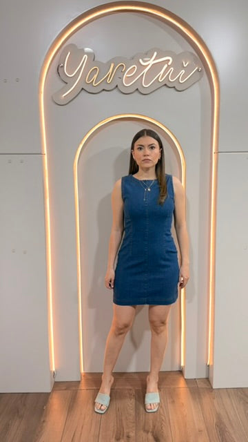 • Vestido de mezclilla que estira, súper cómodo y con un fit que se adapta bonito al cuerpo sin apretar.