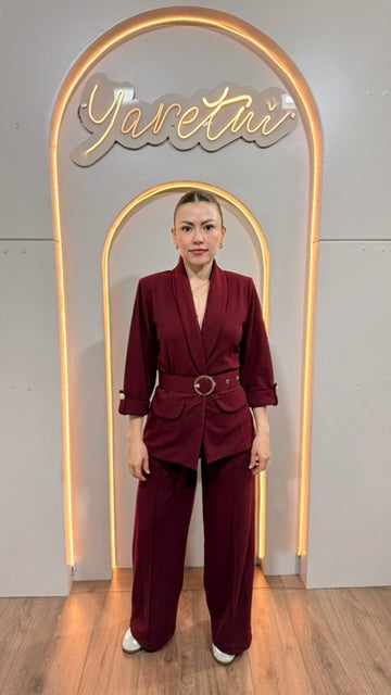Conjunto Blazer Con Hombreras Y Pantalon Con Presilla + Fajo