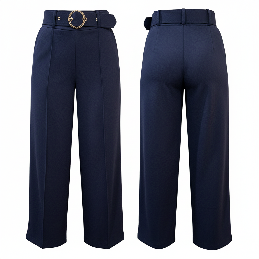 Descubre la elegancia y el estilo cómodo de nuestro hermoso conjunto. El pantalón de pierna ancha presenta una costura frontal que añade un toque de distinción, junto con presillas en la cintura y bolsas laterales para mayor funcionalidad. Su corte favorecedor y su tela de excelente calidad, súper cómoda y fresca, te garantizan comodidad y estilo en cualquier ocasión.