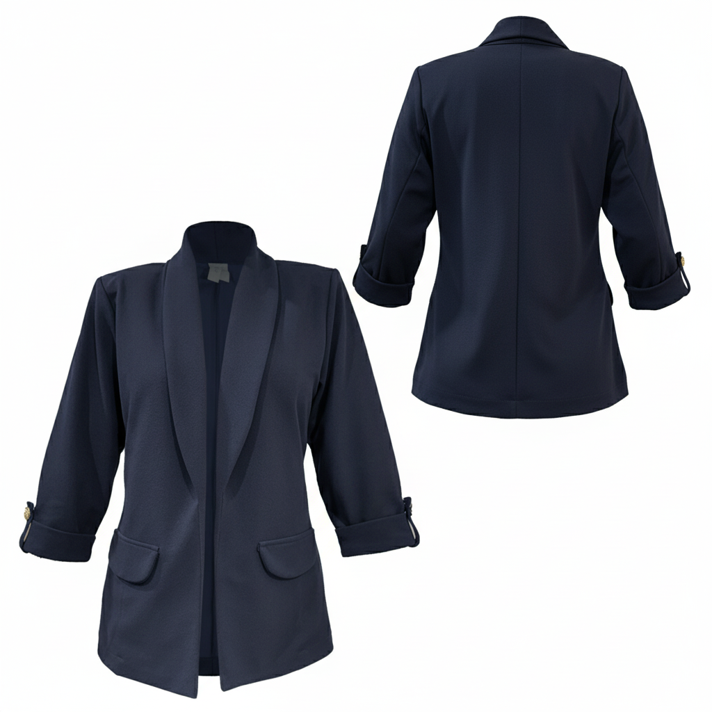 El blazer es el compañero perfecto para completar este conjunto impecable. Con su ribete simulado y ajustador fijo en las mangas con botón dorado, aporta un toque de sofisticación y elegancia. Las hombreras en los hombros realzan tu figura y le dan estructura a la prenda. Aunque no viene forrado por dentro, la tela de alta calidad se siente suave y agradable al contacto con la piel.
