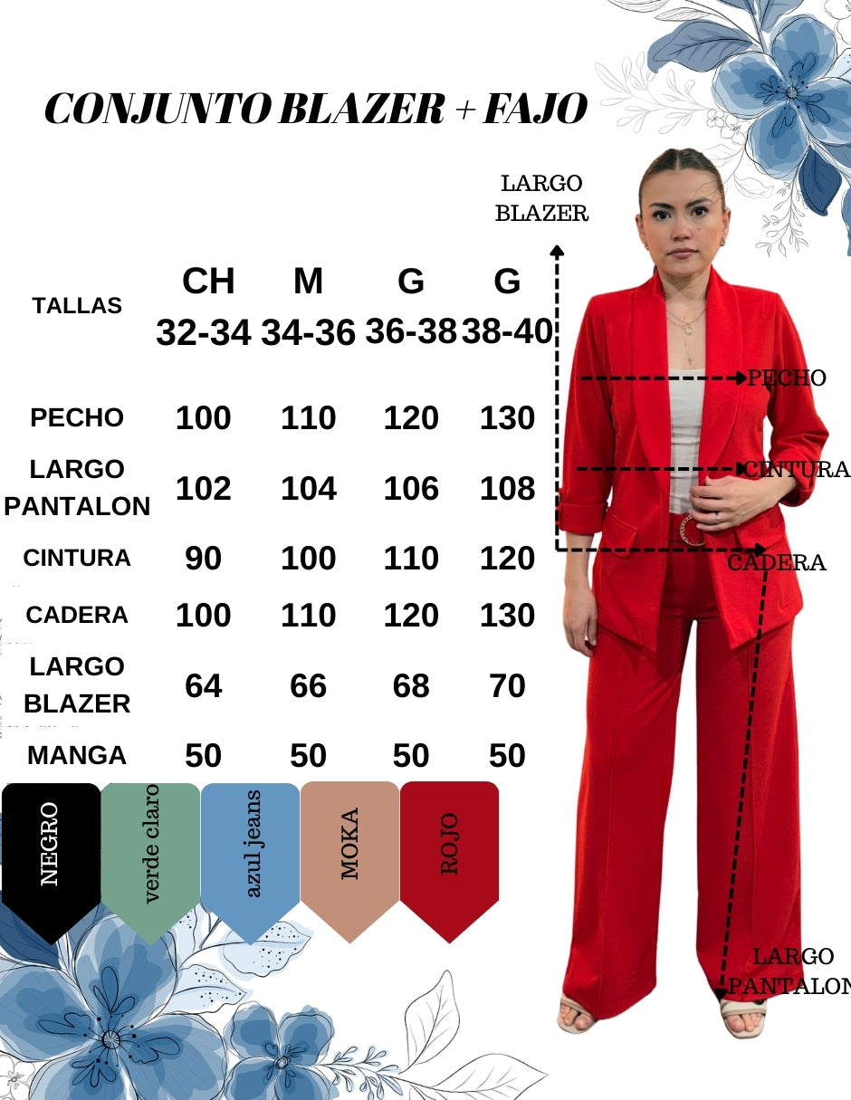 Conjunto Blazer Con Hombreras Y Pantalon Con Presilla + Fajo