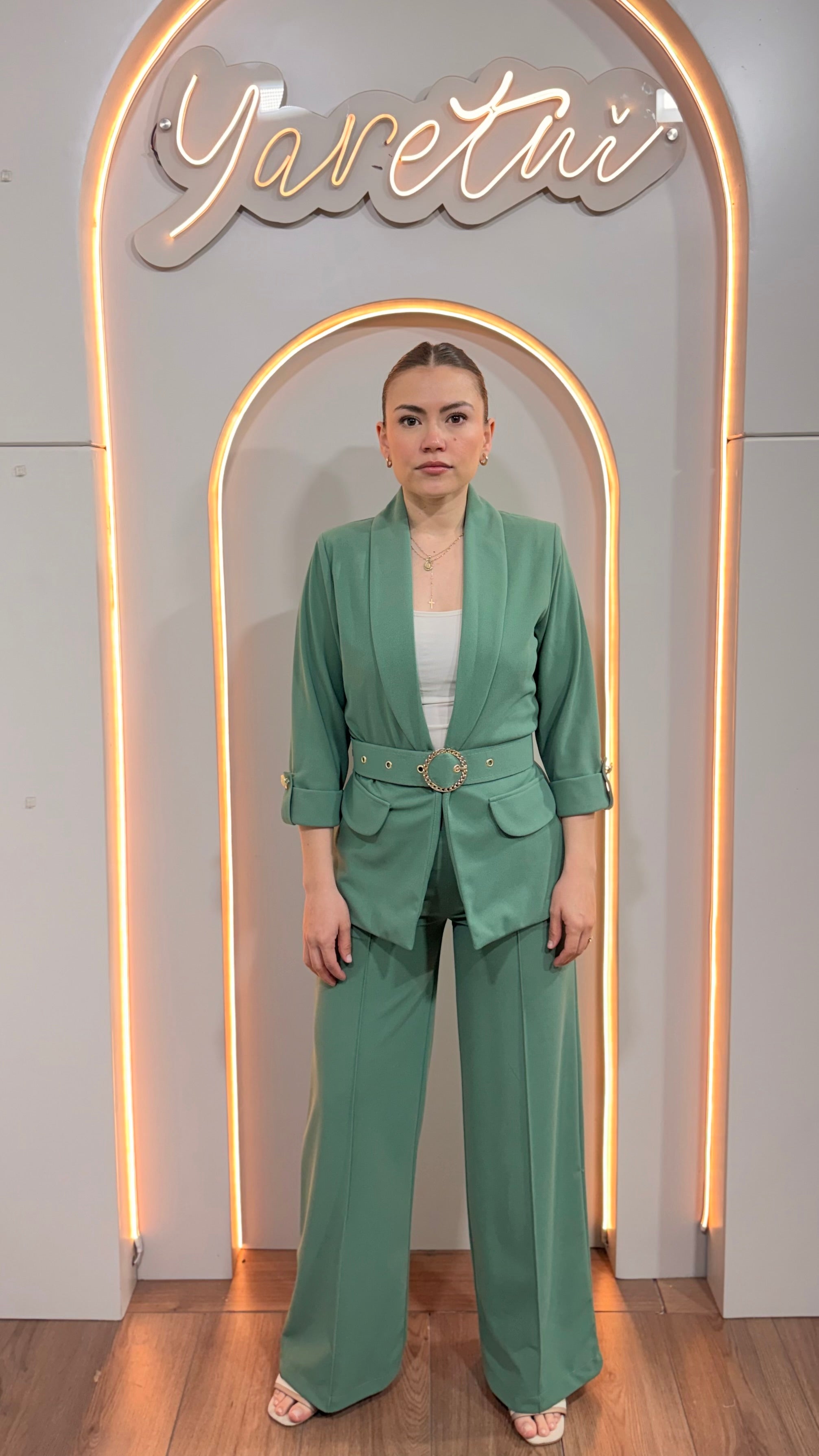 Con este conjunto, lucirás sofisticada, elegante y cómoda, capturando miradas y dejando una impresión duradera en cualquier ocasión especial o evento importante.