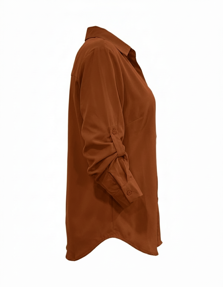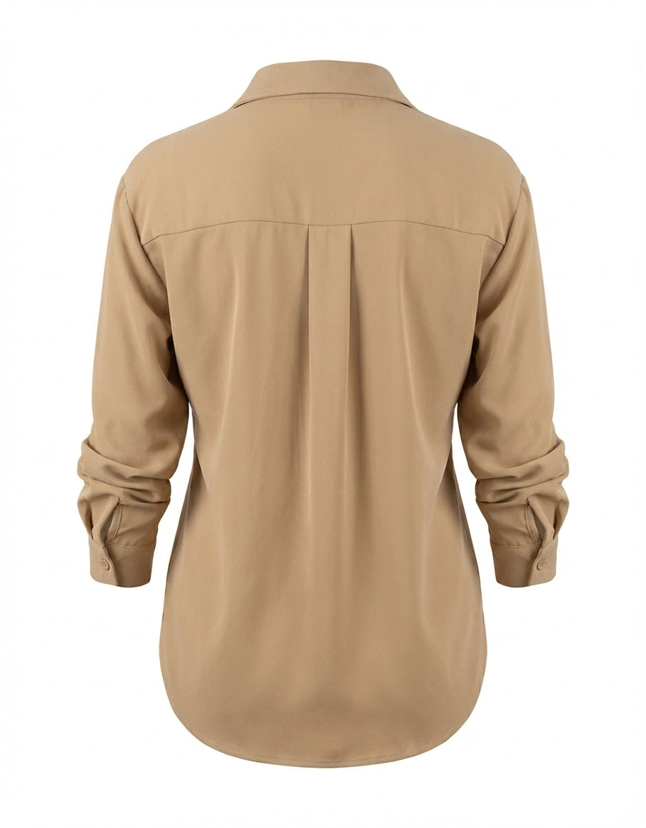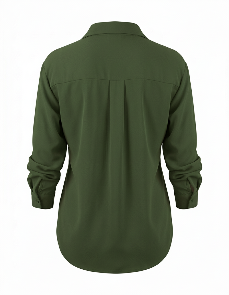 Su cuello camisero tradicional enmarca el rostro con elegancia y aporta ese toque de autoridad y buen gusto. Es la estructura perfecta para lucir sola o para destacar debajo de un blazer, haciendo de esta camisa un musthave tanto para la oficina como para eventos sociales.