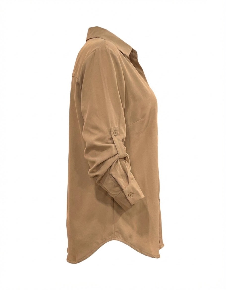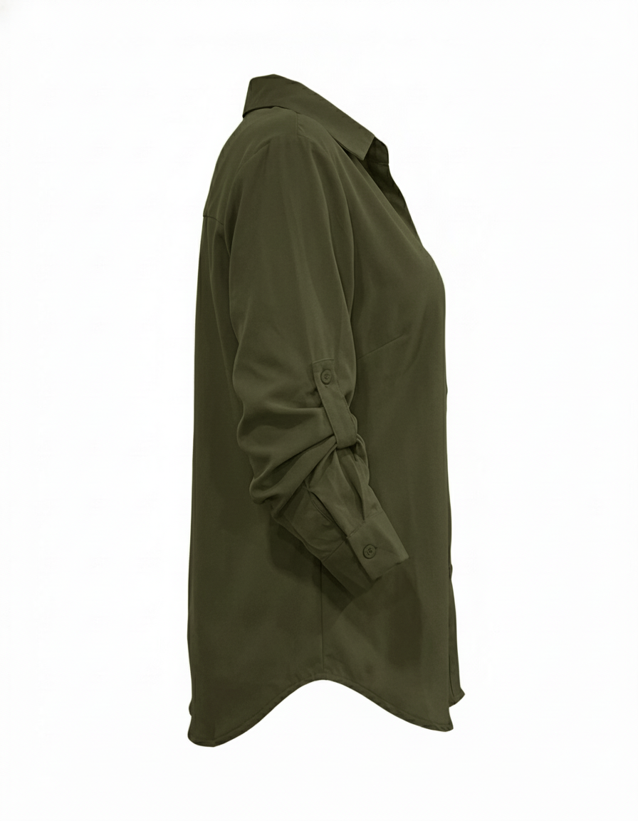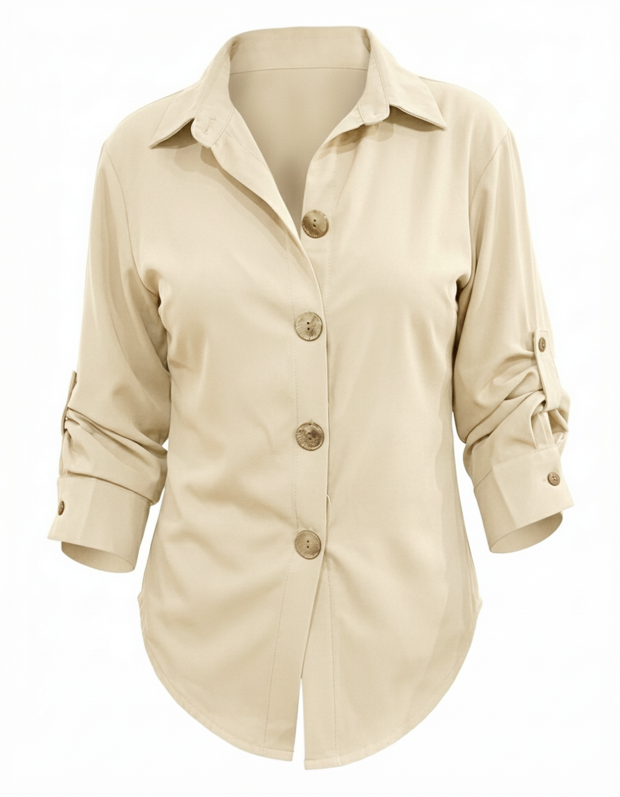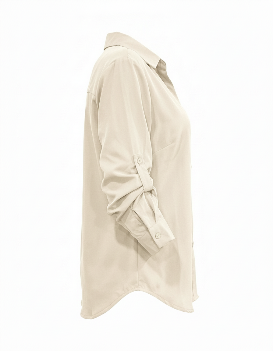 Pensada para la mujer moderna, su diseño de manga larga incluye un puño clásico y un práctico ajustador interno. Este sistema te permite transformar el look en segundos: llévala extendido para una reunión formal o recógela A TRES CUARTOS usando el ajustador para un estilo más relajado y