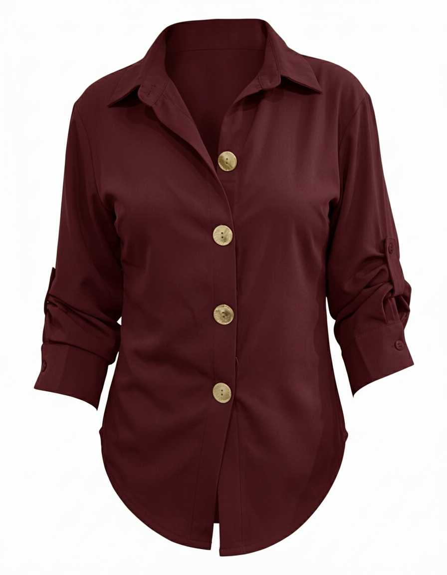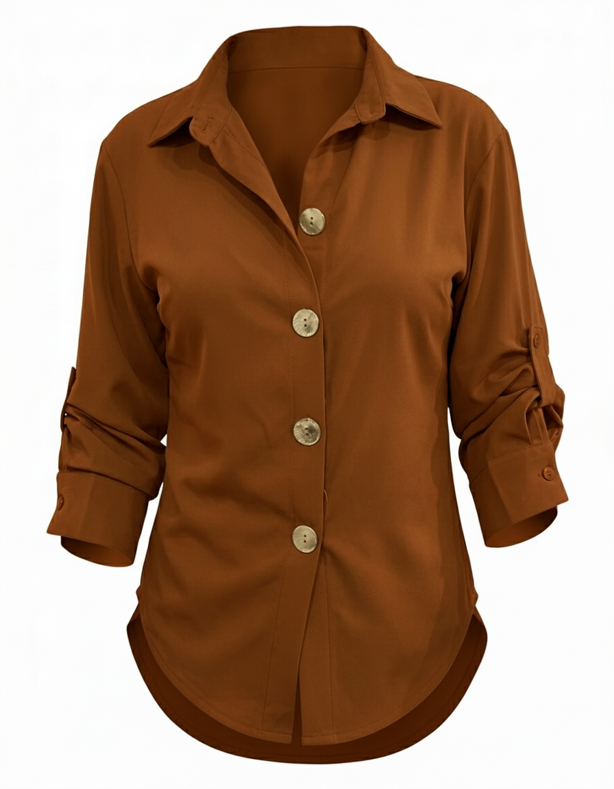 Camisa Para Dama Casual Ajustador Y Cuello Boton Dorado