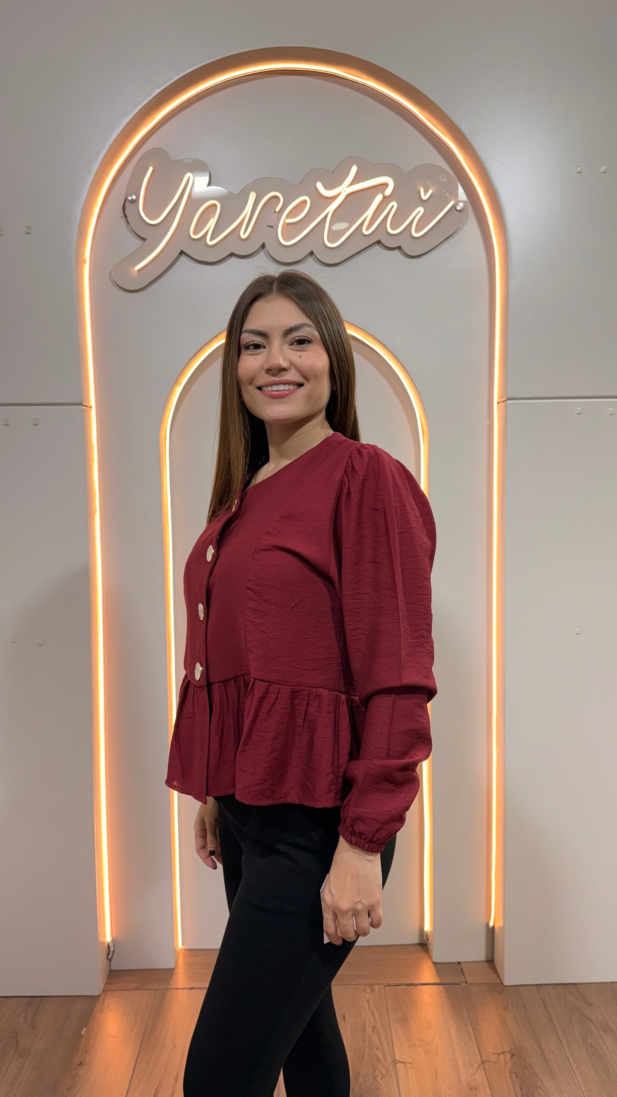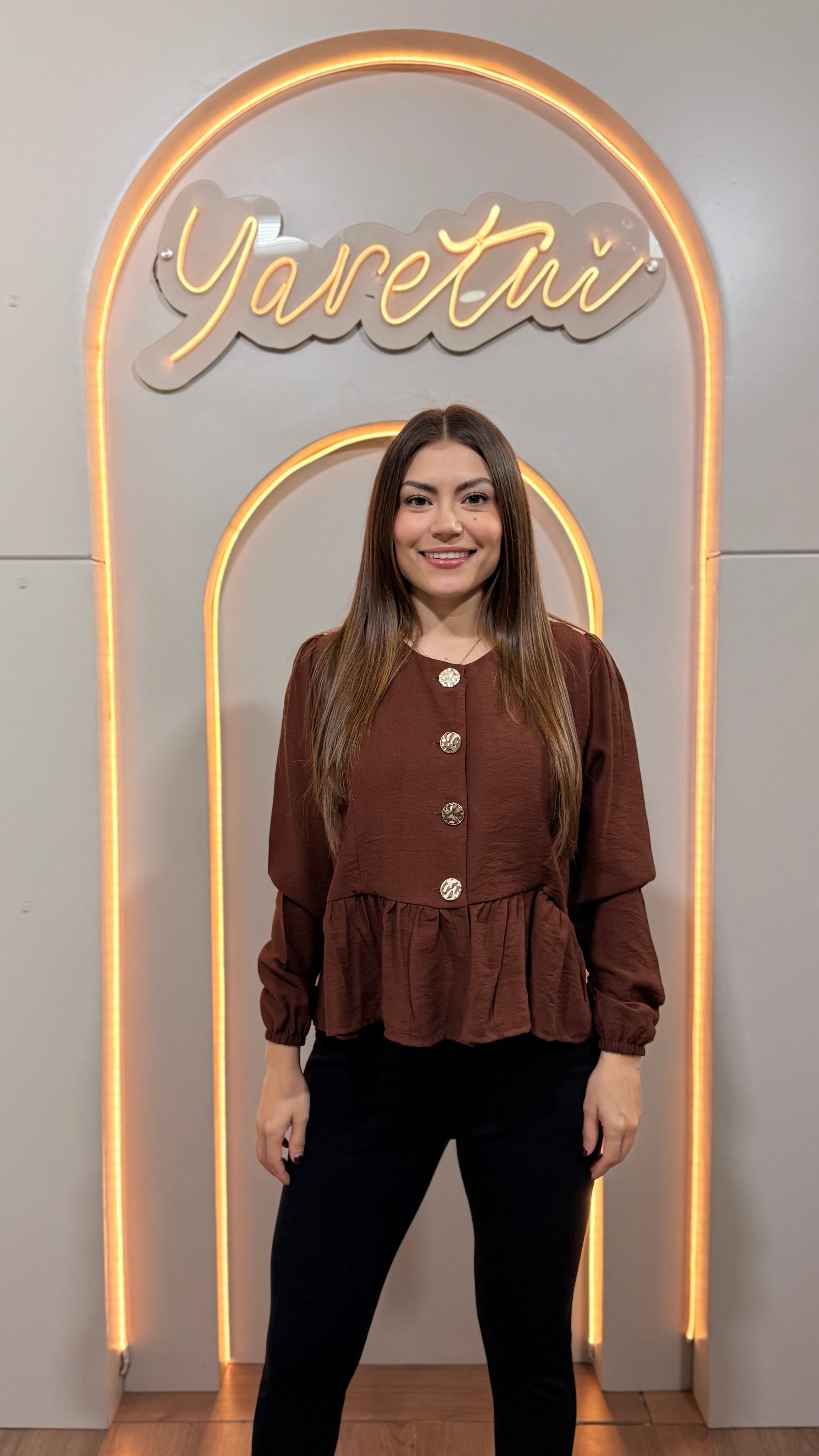 Camisa Para Dama Casual Manga Larga Con Olan Boton Dorado