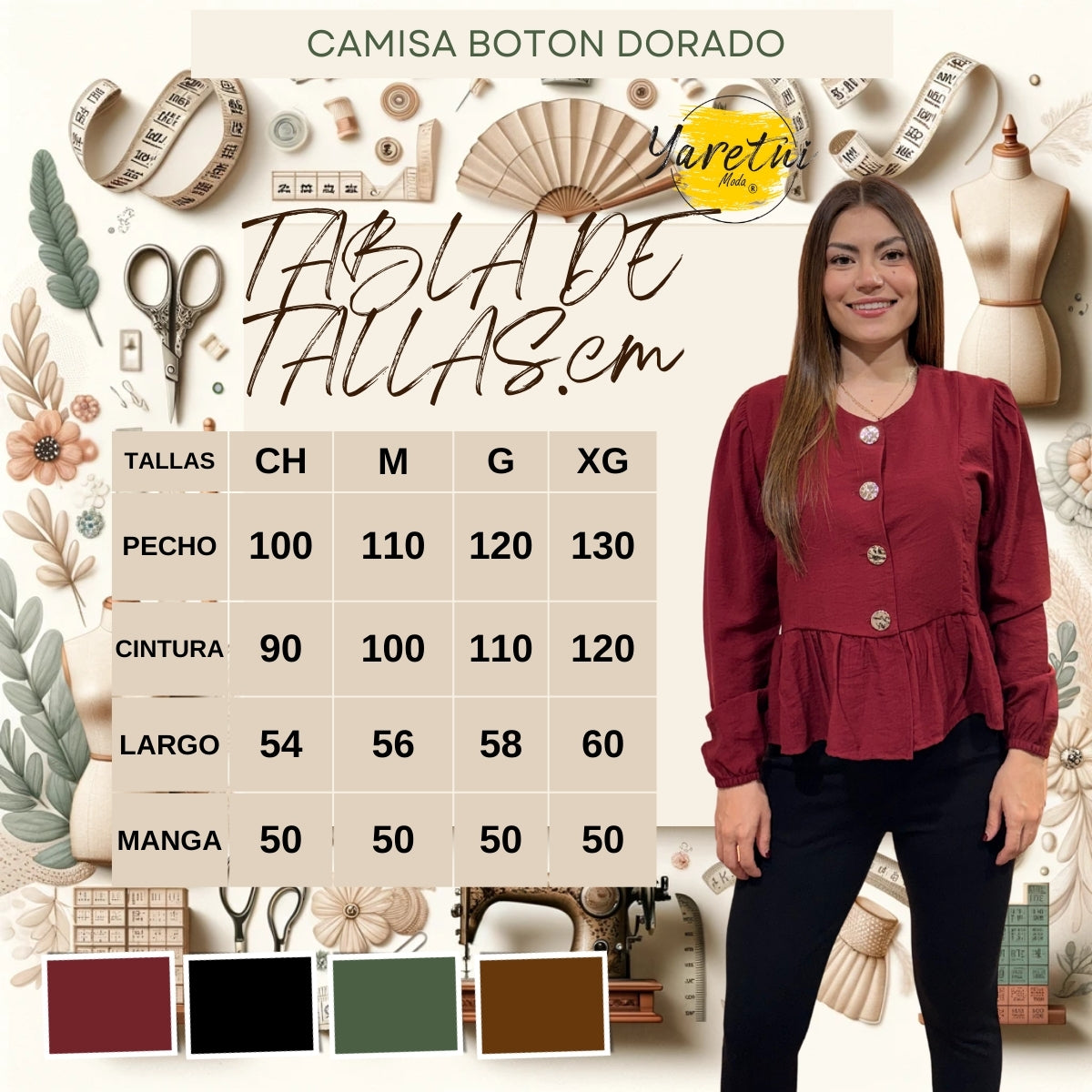 Botones dorados grandes al frente: detalles que iluminan la prenda y la hacen lucir elegante y distintiva.