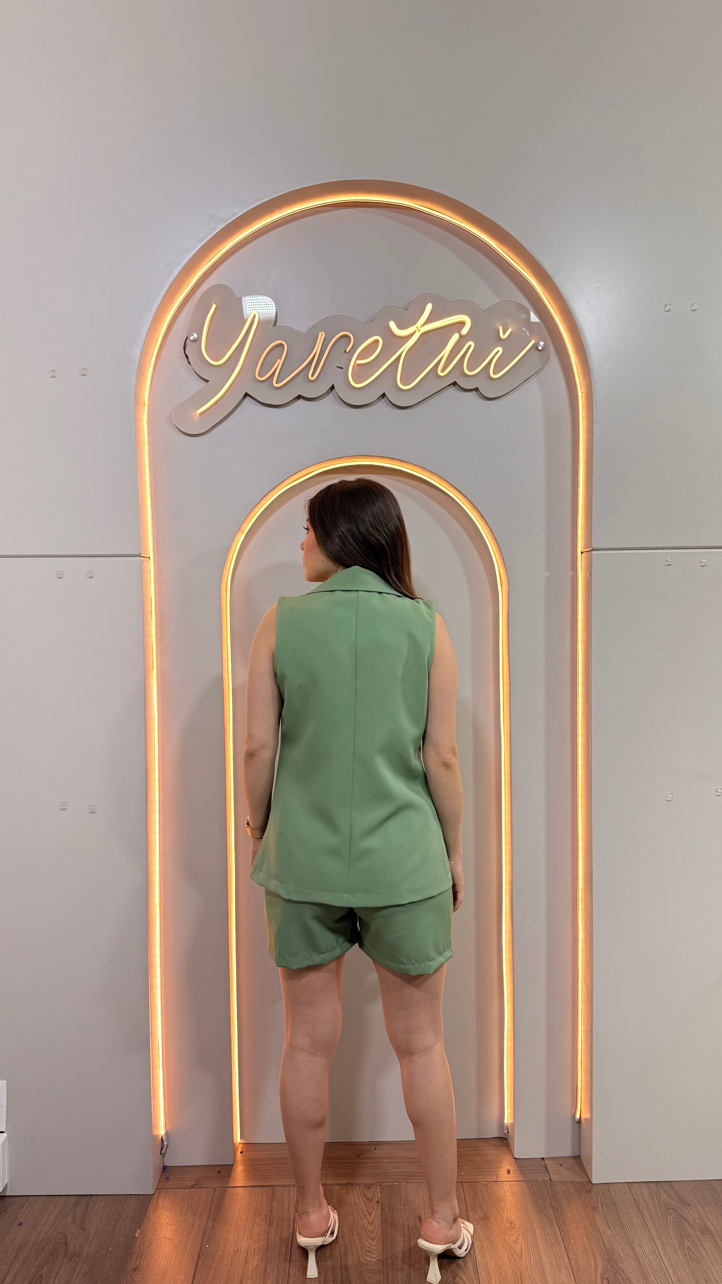 Conjunto short boton y chaleco con solapa casual comodo